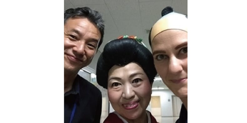りっとう演劇祭実行委員会の松崎(写真左)です。りっとう演劇祭実行委員会は、演劇を舞台芸術をこよなく愛するメンバーが揃って、地元を元気付けようと活動しています。活動の中心は、滋賀県の栗東ですが、日本一参加しやすくて楽しい演劇祭をめざしています。