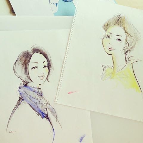 八つ切りサイズで、皆さんの似顔絵をお書きします。