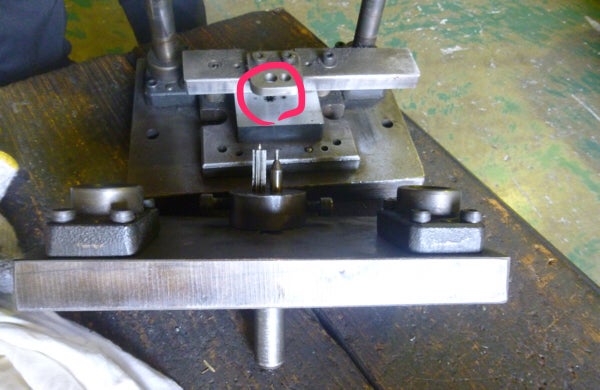 ”ホヤ押さえ”と呼ばれるハリケーンランプ上部のパーツのプレス2工程目の金型です。