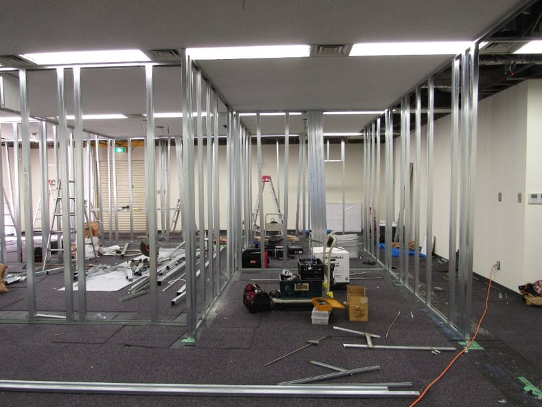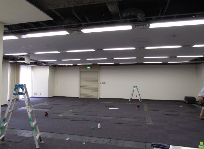 天井の不要な部分の撤去が完了し、何もない空間に、