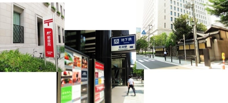 淀屋橋駅(徒歩5分)と北浜駅(徒歩3分)の真ん中にあり