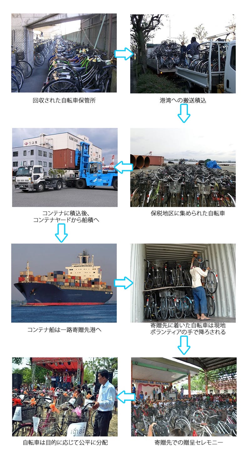 「放置自転車を再生し、世界の子どもたちに贈ろう!」を合言葉に、
