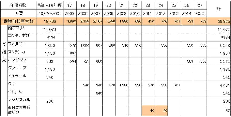 サイクル・エイド事業は平成9年から多くの方のご協力のより、