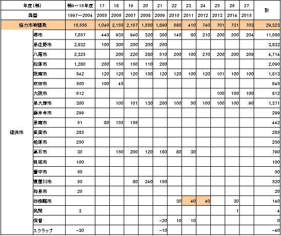 サイクル・エイド事業実績の推移(単位:台) 2016年3月31日現在
