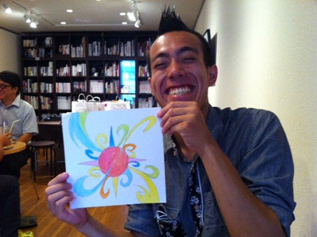 神々が乗ったであろう船をイメージしてつくる、天磐船(あめのいわふね)大和丸。帆のサイズはなんと5m×5mとなりました。そして、こちらの宮崎のモヒカンこと、モヒくんが描いた太陽の絵を、日向の女性たちがキルトで表現して下さることとなりました。どんな完成形になるのか、私たちもとても楽しみです!