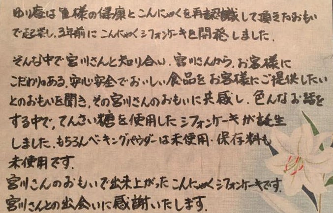 シフォンケーキのお返しにご協力いただいた大谷さんからは、ご支援いただく皆さん宛のメッセージもいただきました。