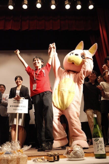 ↑着ぐるみのプロジェクトで”総合グランプリ”を受賞した山形県朝日町プレゼンターの皆さん