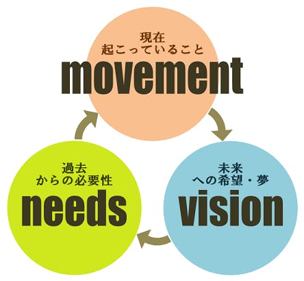 needsからmovementが起き、そこからvisionが生まれ、子どもたちが大人になる頃には、visionがneeds となる。