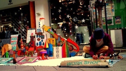 せっかく本棚をつくるのであれば、これまでのように小さい段ボールでなく、今までになかったようなテイストで町を飾り、町がひきたつものにしたいと考え、宮崎の絵描き/ダンボール作家として活躍するSATOSHI OHNOに協力してもらって、魅力的な本棚を作ろう!と考えております。