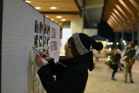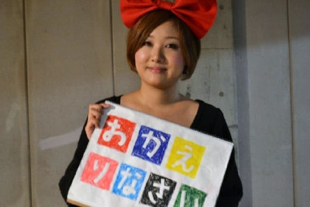 「おかえりなさい」のボードを持って撮影の依頼。これなら誰でも安心して撮影をお願いできます
