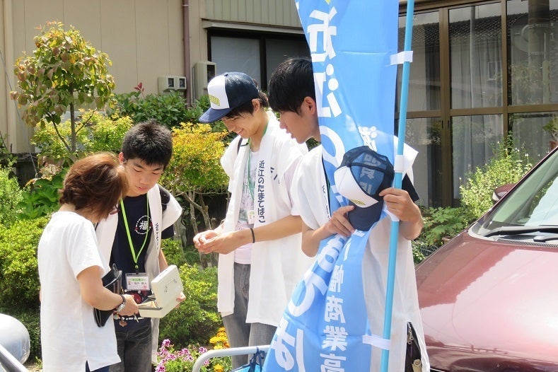 商売について学習しながら滋賀県と滋賀県の特産物をPRしています。そして、この活動の収益の一部を震災復興等の社会福祉支援に寄付をしており、昨年度も10万円の寄付をさせていただきました。