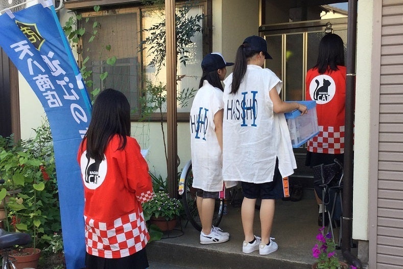 ▲これは、新潟県で長岡商業高校生と一緒に行商を行った風景です。