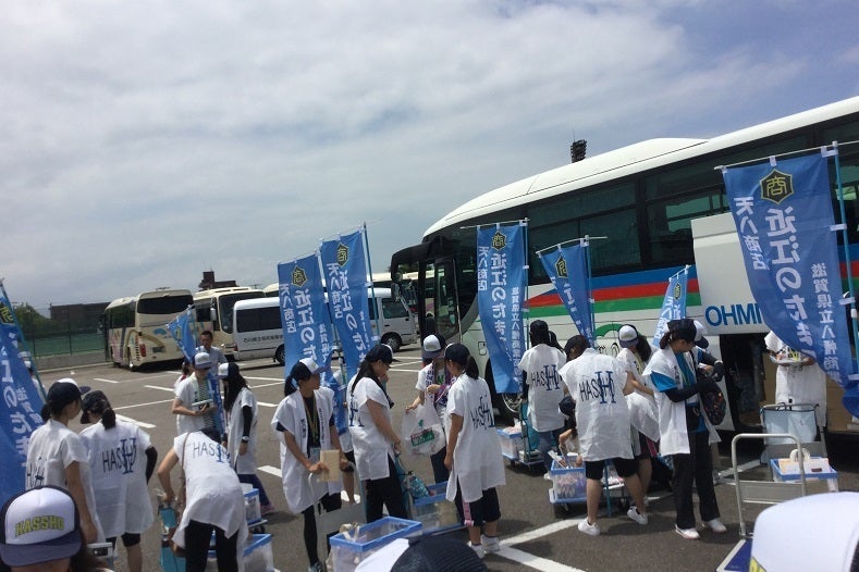 このプロジェクトは、夏休み期間中にプロジェクトに参加している私たち生徒が、かつての近江商人の足跡を訪ねて、滋賀県や訪問地の特産物を仕入れ、東北や関東などで販売実習を行っています。