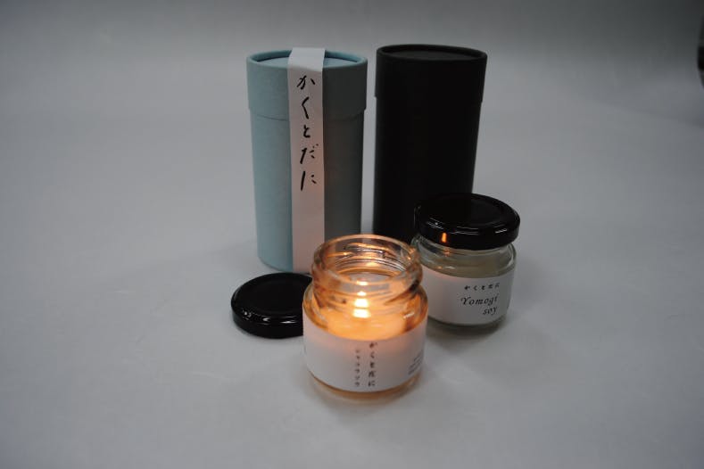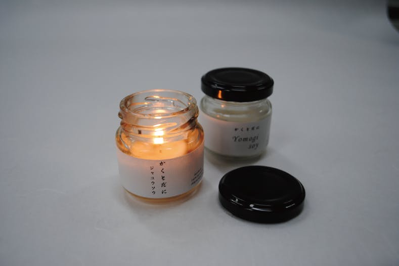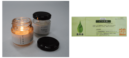 抽出したアロマオイルとアロマウォーターでアロマキャンドル、ワックスバー、ルームスプレーの商品化を目指して、地元・米原市多和田にあるローザンベリー多和田と京都の鹿森舎の協力で試作品ができました。