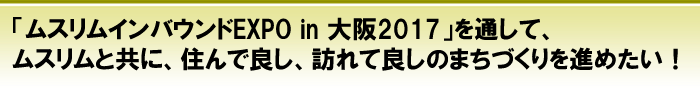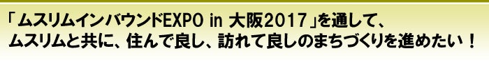 この「ムスリムインバウンドEXPO in 大阪2017」を通して、ムスリムと共に、住んで良し、訪れて良しのまちづくりを実現していきたいと思っています。