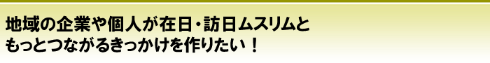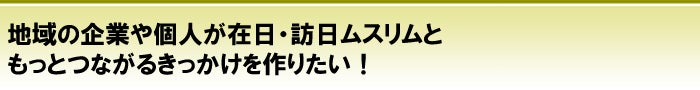 また、日本を訪れるムスリムの旅行者が自分の国からインスタントラーメンや缶詰などを持ち込んで食べていること、折角日本に来ても日本食や地域の名物が味わえないことが多いこと、礼拝の場所がなかなか見つからず不安なこと、そして一緒に回るガイドも困っていることを知りました。
