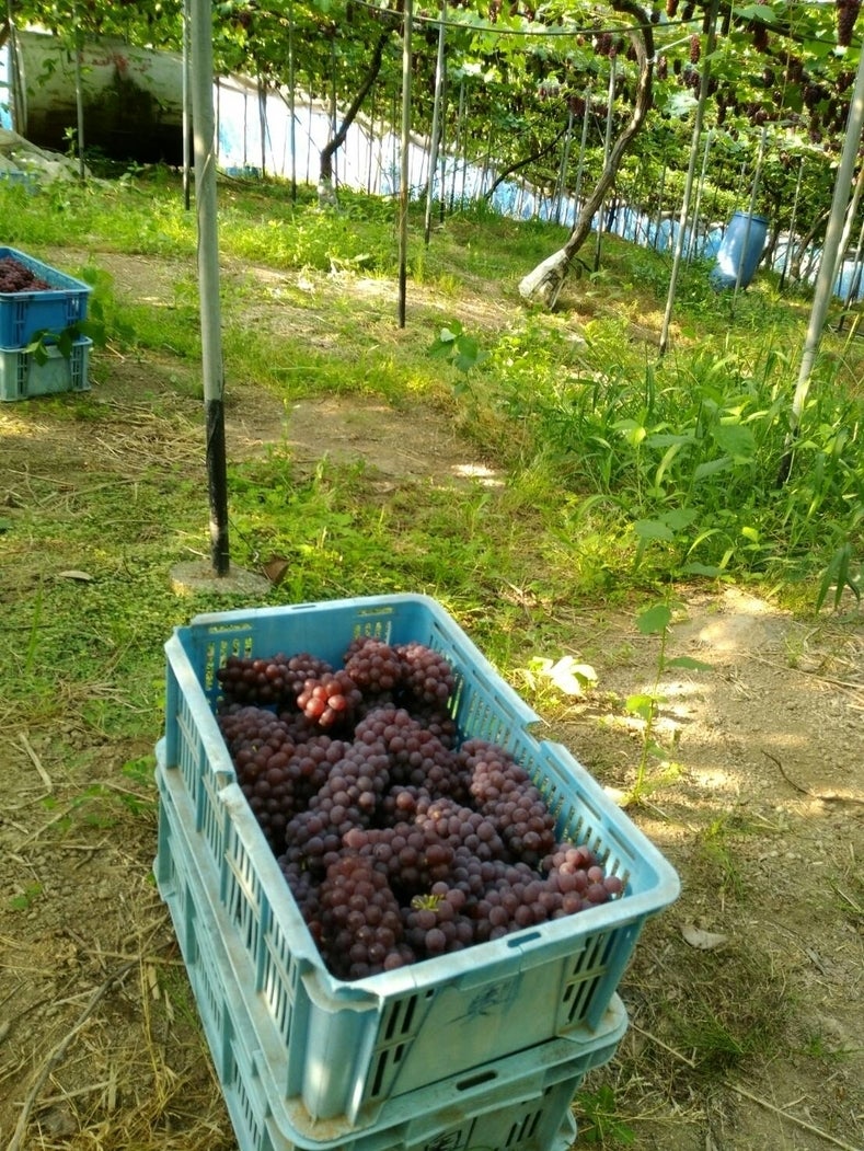 クラウドファンディング 残り少しです! 葡萄の繁忙期は早朝から夜中まで仕事 毎日がものすごいスピードで過ぎていきます 日々、多くのお客様との出会いに感謝しながら 良いぶどうが実ってくれたことに喜びを感じながら 過ごしています そして、クラウドファンディングでは 多くのご支援をいただくことができています 本当にありがとうございます!! 目標の200%までは 残り少しの日程では厳しいかもしれませんが まだあきらめていません やるからには全力で 最後まで頑張ります! ーーーー 葡萄のカネオクでは 柏原特産品であるデラウェアの出荷がピークを過ぎ これからは直売メインに切り替わります 一番人気のピオーネも 段々と色づいてきました 早く収穫して、お客様に届けたいですが もう少しの辛抱です 写真は去年のものですが 今年も去年に負けないくらい良い葡萄が出来上がってきています ご支援頂いた方には8月に送らせていただきますので お楽しみにお待ち下さい ぶどうの木オーナーコースも 追加した9名分空きがありますので 是非ともご検討くださいね