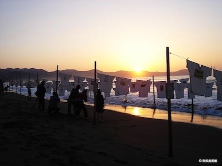 砂浜に1000枚ものTシャツがひらひらする「Tシャツアート展」。砂浜美術館の発想はここから始まりました。Tシャツアート展は、砂浜美術館が元祖です。