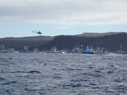 ▲モロカイ海峡を渡る。5時間にも及ぶ孤独な戦いの一幕です。
