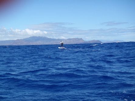 いつもより弱い風で向きも悪く、潮流も複雑な中、とにかくオアフ島を目指して漕ぎ続けます。
