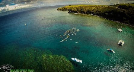 マウイモロカイのスタート地点である"ホノルアベイ"。レーススタート前の写真。