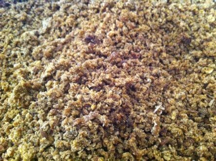 (3)そして、皮が水と一緒に煮込まれて残ったものがこちらです。(エッセンシャルオイルが水と一緒に蒸気になり抜けた状態です。)