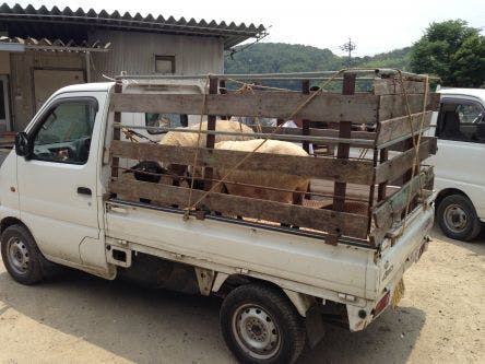 2014/07/05 20:21こんにちは。羊男子1号です。 先日、待ちに待った羊たちが北海道から広島県福山に到着しましたので片道4時間の道のりを軽トラックで引取りに行ってきました。 写真と共にご報告いたします。 これから4時間の長旅になるけど我慢してね! 2歳の男前の旦那(奥)と、4歳の姉さん女房(手前)。 新しい場所で少しドキドキしてトラックを降りるのも少し躊躇していました。 トラックを降りてからもキョロキョロと辺りを見回しながら探索しました。 徐々に餌に戯れている新しい仲間たちに向かっていきますが… 中々、すぐには群れには入らないようです… 羊の引越から3週間経ちましたが、仲間たちと少しずつ打ち解け、元気に過ごしています。 まずは私の牧地で引取り、順番に皆の牧場の羊に種付けをして回ってもらいます。 元気な子供たちが産まれるように大切に育てて参ります。 応援を頂いている皆様に、川本町羊飼い一同より心からお礼を申し上げます。 羊男子1号(東海林 誠) もっと見る