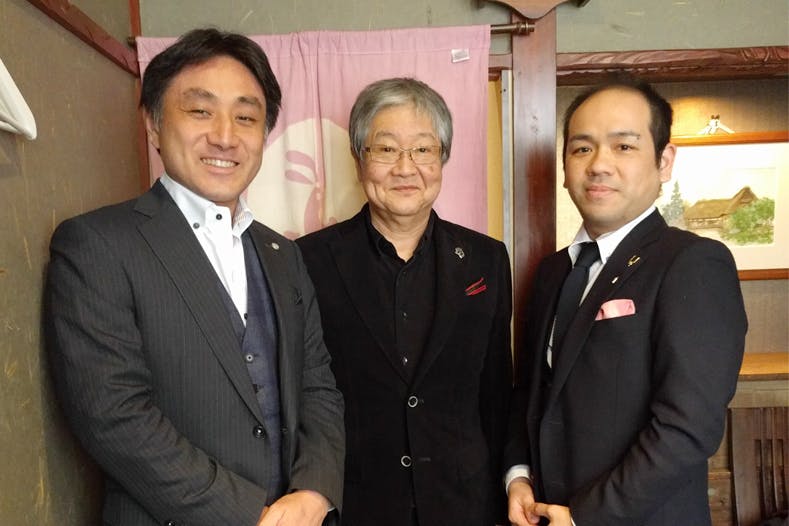 謙信スーツは上杉子爵家(新田上杉家)9代目上杉孝久さん(中)に全面的なご協力を頂いての挑戦です。