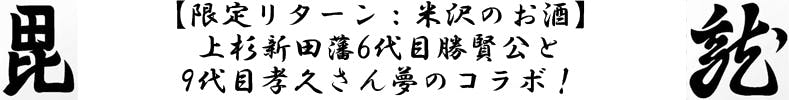 上杉家のお膝元、山形県米沢市から純米吟醸酒のリターン!
