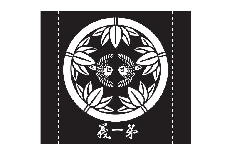 家紋の下には、謙信公が預けられ、幼少の頃を過ごした林泉寺の山門に掲げられている謙信公直筆とされる「第一義」、上杉家の人々を象徴する文字をしたため、これを纏い生き抜く皆様へのエールにしたいと考えています。