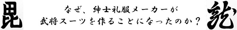 スタートは大阪谷町にある弊社で「真田幸村スーツ」です。