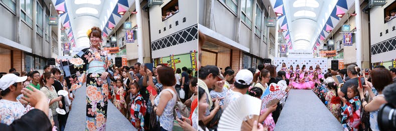 それから、周りの商店街のメンバーを連れて、関西コレクションが行っているイベントに足繁く通い、ファッションショーを学ばせてもらい、構想から約1年が経過した頃、何度も何度も打合せして、ようやくファッションショーを実施できました。