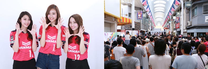 駒川商店街は、セレッソ大阪のホームタウンで、商店主の皆さんはじめ、商店街のお客様や、近隣の皆さまからいつも大きなご声援を頂いています。