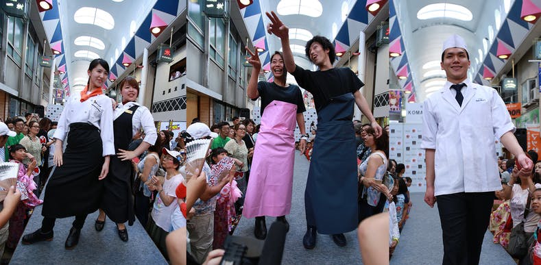 商店街の店主が、お店のユニフォーム姿でファッションショーに出演し、来場者の皆さんと大変盛り上がりました。