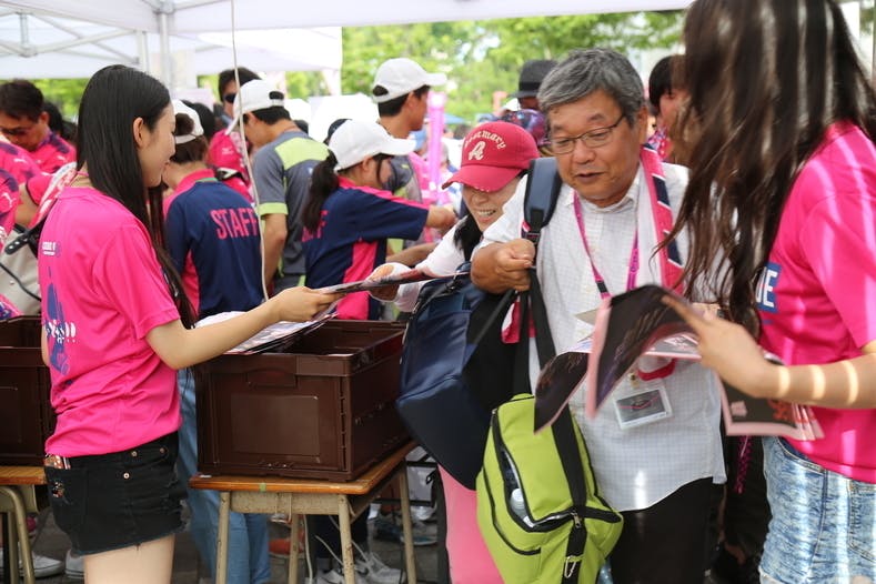 また、来場者入口でも、14,000人の来場者の皆さんへ「駒川ランウェイ」のチラシが入ったサンプリングを配布させて頂きました。