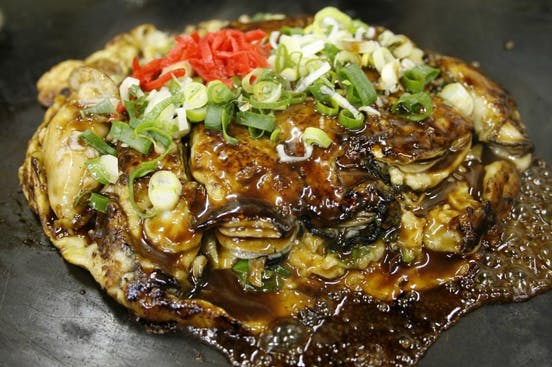 「カキオコ」とは、日生特産の新鮮で肉厚なカキをふんだんに使ったお好み焼きのことです。