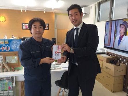 石巻茶色い焼きそばアカデミーの柳橋会長から寄付を受け取ったと、