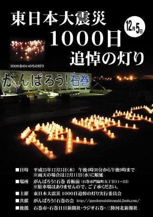 これは12月5日に宮城県石巻市で行われる「東日本大震災 1000日 追悼の灯り」の共催団体「がんばろう石巻の会」 の言葉です!