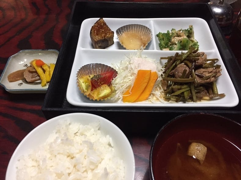自家製のお野菜や地元の食材をふんだんに使ったご飯。