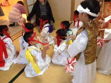 私たち蒼風会メンバー、地域の保育園に神楽を教えに行く活動をおります。
