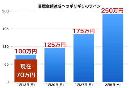 皆さん、こんばんは。 飫肥杉デザイン世界展開チームです。 このプロジェクトも、残り22日余りとなりました。ご支援いただきました皆様本当にありがとうございます! 1月13日の時点で、達成ライン"以下"の状態です。。 目標金額達成を実現するには、13日の時点で、100万円の支援を得ている事が理想だったのですが、現在70万円です。 クラウドファンディングでは、最後の段階で、支援が得られる事が多いのですが、それでも少しでもゴールに近づけておかないと、ギリギリで到達しないという事もあります。 次は、1月20日(月)までに、ぎりぎりのライン125万円の達成を目指して、活動を続けております。 ご検討中の方、最後に支援を検討されていらっしゃる方も、少しでもゴールに近づけるために、ご協力頂ければ幸いです。宜しくお願いいたします。