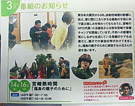 3/16 7:45〜 8:10 NHK宮崎放送局(再放送)