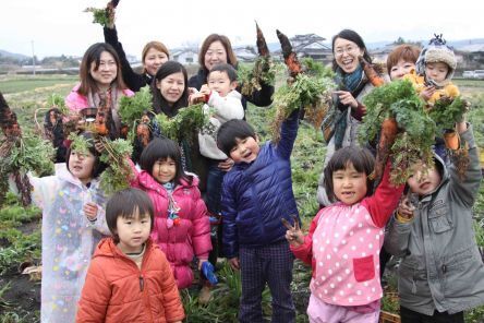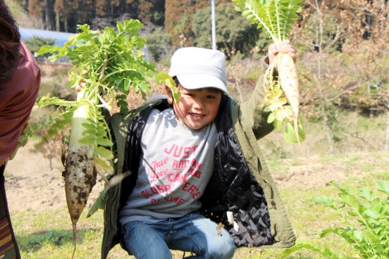 ▲畑で大根収穫を楽しむ子ども達♩