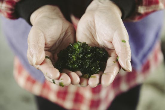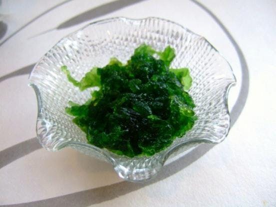 『川茸』はゼラチン質で、ツルツルとした食感とクセの無い味わいで、和洋中の様々な料理で活用する事ができます。炭水化物、タンパク質、ミネラル、ビタミンB12などの良質の栄養素を豊富に含み、川茸を乾燥させた『壽泉苔(ジュセンタイ)』は鉄分が豊富です。