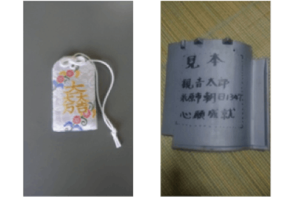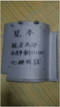 10,000円のご支援をいただきました皆様には、今回の修復において葺き替えられる新しい瓦に、「お名前」、「ご住所」、そして「お願い事」を、観音寺の林住職により書かせていただき、その写真をお届けさせていただきます。これらの瓦は、平成29年12月から平成30年7月に実施されます工事において、薬師堂の屋根に納めさせていただきます。