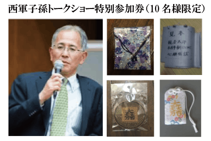 さらに、石田家15代当主の石田秀雄さん、長宗我部家17代当主の長宗我部友親さん、そして映画「関ヶ原」で大谷吉継役を熱演した大場泰正さんをお招きしたトークショーへの特別参加券をお届けいたします。