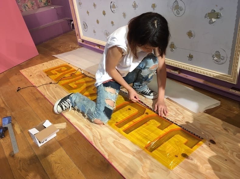 移動も大変ですし、何よりも板と板をつなげるために、数えきれないくらい余り木とネジを打ってるみたい。打ちすぎると、お客様の方にネジが飛び出したりしてしまって、加減が難しくて何度も何度もやり直したらしいです。