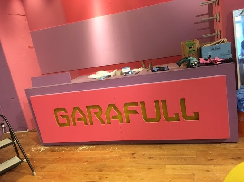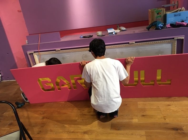 レジ台はロゴの部分の部分の切り抜きがとにかく大変だったみたいで。