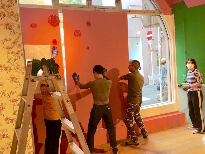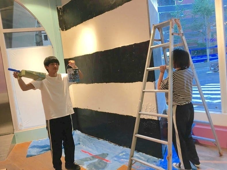 場所は大阪梅田中崎町にあるチェルシーマーケットです。駅からだと横断歩道渡って真正面に入口があります。作業中道行く人たちに「こいつらなにしてるんや…」って目で見られて恥ずかしかった…