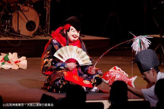 ▲東京社中の公演の様子、大蛇(上)、恵比須(中)、塩祓(下)